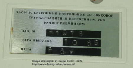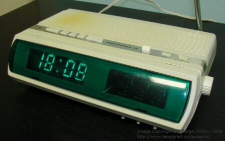 Il a été conçu pour afficher l’heure avec une grande précision, ainsi que pour activer le réveil ou la radio. Alimentation sur secteur, sauvegarde par pile. Consommation électrique 9 watts. La radio a trois réglages fixes dans la plage de 65,7 à 74 MHz. La sensibilité du récepteur est de 20 uV. La puissance de sortie nominale est de 0,5 watts. La gamme de fréquences reproduites est de 200 à 5000 Hz. Dimensions : 275x185x80 mm. Poids 1,8 kg.