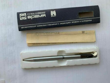 « Tsvetotron » a fabriqué des produits horlogers dont ce fameux stylo-souvenir (Ручка-сувенир) de la marque Vrémia (время, « Temps »).