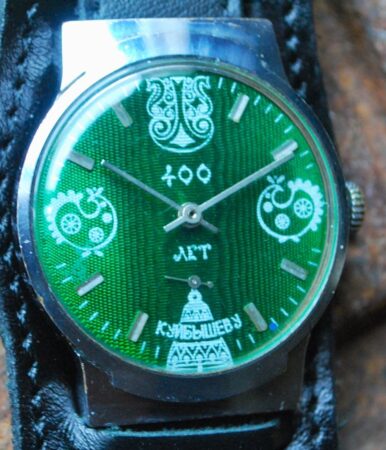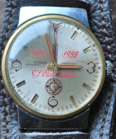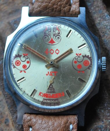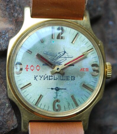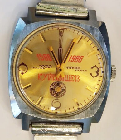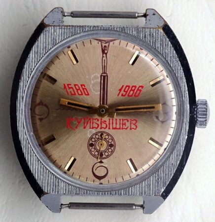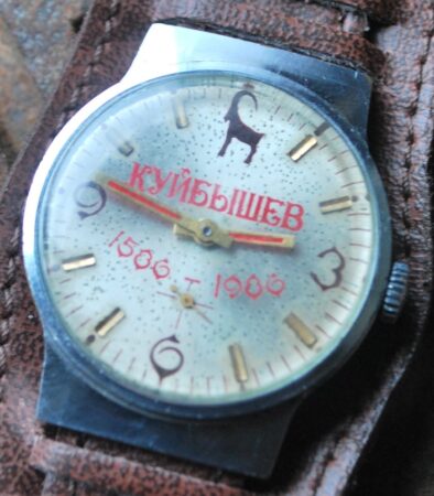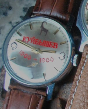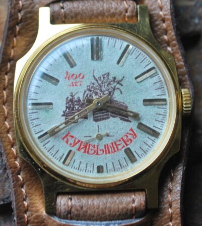 La fabrique ZIM n’a pas seulement produit des montres pour les 400 ans de la ville, elle a aussi produit un modèle de bracelet, avec les armoiries de la ville estampées sur la boucle avec la mention 100 лет Куйбышев: