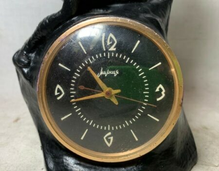 Cette horloge est le fruit de la coopération entre la Fabrique de Montres de Tchéliabinsk et de la Fabrique de Kasli, deux fabriques voisines situées dans l’Oural.