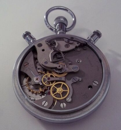 Il est équipé de deux « trotteuses » alignées. Lancées, les deux aiguilles tournent ensemble, synchronisées. Au besoin d’une mesure intermédiaire, une action sur le poussoir dédié arrête l’aiguille esclave (la rouge) permettant une lecture précise.