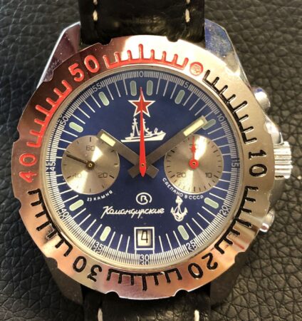 En 1989, Time Trend commercialise des chronographes Komandirskie assemblé en Italie (semble-t-il) à partir de cadrans, aiguilles et calibres (3133) de la 1ère Fabrique de Montres de Moscou. Ces quasi-Poljot seront pourtant vendues comme des Vostok (pour en savoir plus sur ce modèle).