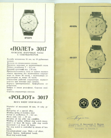 Avec la réforme du début de 1964 (une fabrique = une marque) les Strela sont devenue des Poljot 3017.