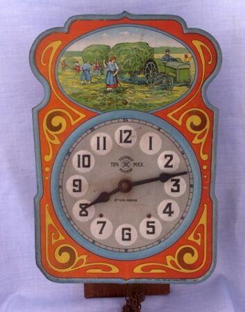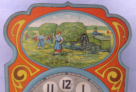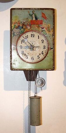 Ces horloges à poids et à cadran illustré, typiques, étaient produites à la fin du XIXe siècle dans le district de Zvenigorod, dans la province de Moscou, et plus particulièrement à Charapovo.