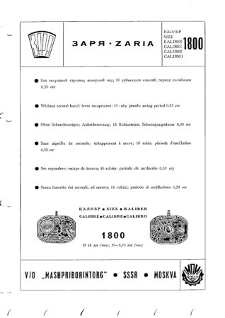 Le Zaria 1800 est un calibre mécanique de la Fabrique de montres de Penza pour montres de dame Zaria (exporté en RDA et emboîté dans des UMF-Ruhla pour dame). Ses surplus ont été utilisé par le LenRemChas pour revalider des Raketa et des Vostok (voir ici).