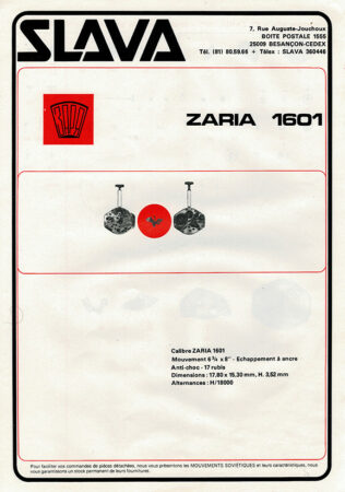 Le mécanisme 1601 (ou Z1601 sur certaines productions pour l’exportation) de la Fabrique de Montres de Penzaest un mécanisme mécanique pur montres de dame Zaria.