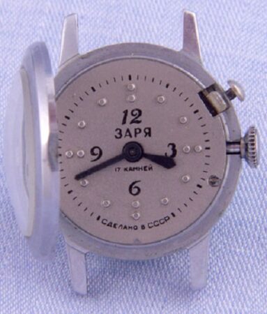 Les autres fabriques horlogères soviétiques ont aussi produit des montres pour aveugle.