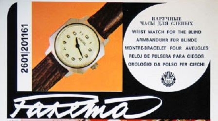 Notons enfin que les aveugles, organisée par la Société des aveugles de toute l’Union [soviétiques], la BOC, s’employaient dans des centres de formations et de productions dont certains produisaient des… montres jouets (voir ici).