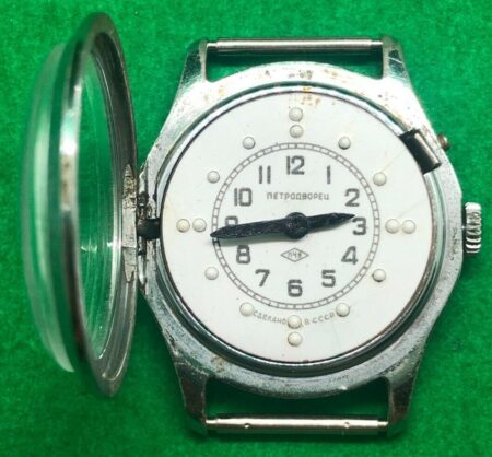 C’est cependant la Fabrique de Montres de Petrodvorets qui a produit le plus massivement des montres pour aveugles, avant 1964 sous la marque Petrodvorets, et ensuite sous la marque Raketa.