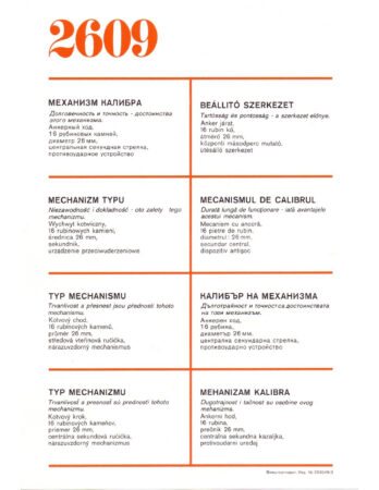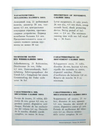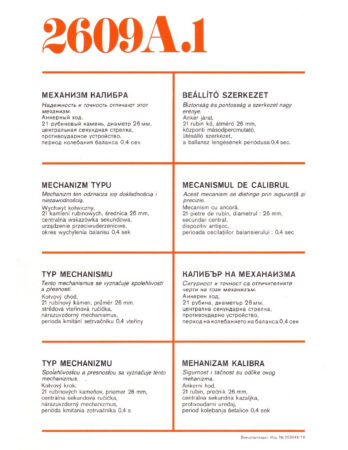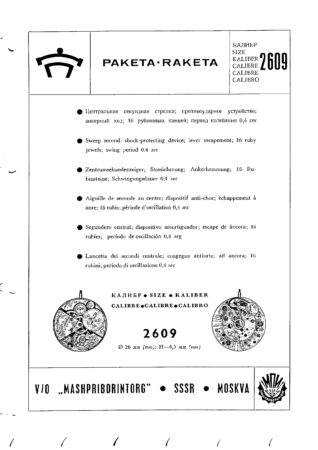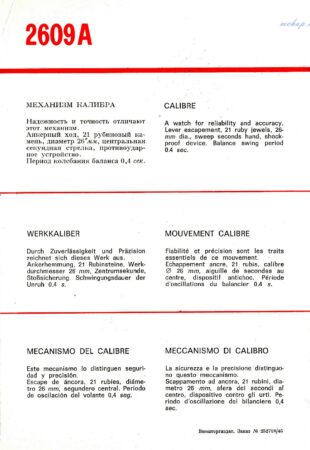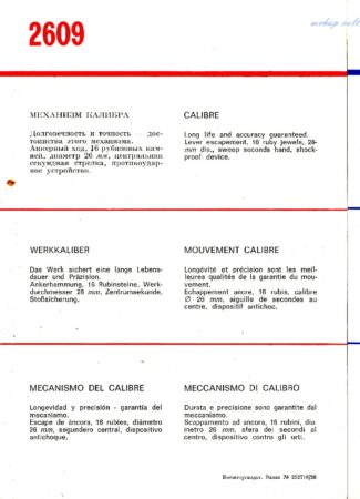 Les premiers, qui ont d’abord équipé les montres « Baltika », avaient deux rubis du pont principal assujettis par une pièces vissées. Autre particularité des premiers 2609A: les deux vis sur la roue de couronne.: