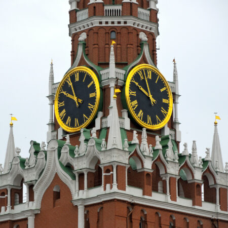 Depuis 1923, la radio puis la télévision retransmettent le son de l’horloge du Kremlin à l’occasion de chaque nouvelle année, juste après le traditionnel discours de vœux du Secrétaire général. En 1932, l’horloge du Kremlin a de nouveau été restaurée. Il fallu 28 kilos d’or pour refaire le pourtour, les chiffres et les aiguilles de l’horloge. Un nouveau cadran a été installé, une copie exacte de l’original.