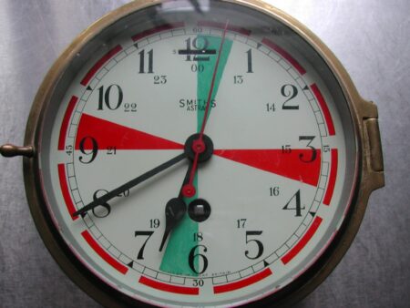 L’accord exigeait que chaque fois qu’un appel de détresse SOS était entendu, toutes les transmissions non liées à l’urgence devaient cesser immédiatement jusqu’à ce que l’urgence soit déclarée terminée. Et pour éviter qu’un message de détresse soit noyé dans le trafic radio, l’accord précisait en outre qu’un silence radio de trois minutes devait être observés à la fin de périodes de 15 minutes. Toute communication autre que les appels de secours était interdite, sur la fréquence 500 Khz, durant deux périodes de 15-18 minutes et 45-48 minutes. Les premières horloges « Radio room » indiquaient donc ces deux périodes en rouge sur leur cadran.