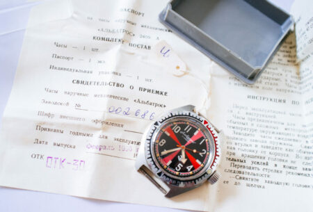 La célèbre Vostok « radio room » (référence 2409A/470444) n’est pas une montre de service destinée aux marins soviétiques. Elle n’est sans doute même pas, à l’origine, destinée aux citoyens soviétiques. Le premier lot est sans doute le fruit d’une commande d’un importateur qui les destinait au marché allemand et/ou italien, alors en plein boom pour les montres soviétiques à l’allure militaire. Elles faisaient partie de la série Albatros.
