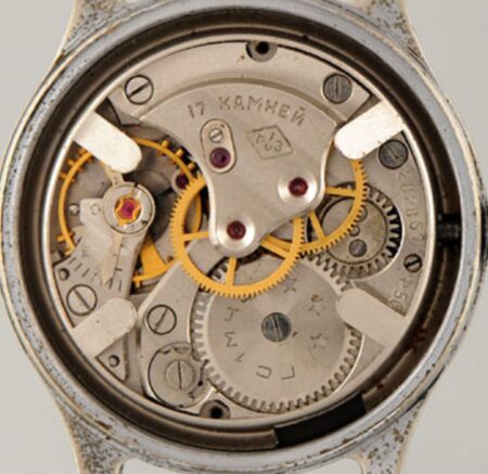 Premier mécanisme « 24 heures » produit à la fin des années ’50 par la 1ère Fabrique de Montres de Moscou pour les montres « Antarctique » et « Pôle Nord » (en savoir plus sur ces montres).