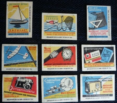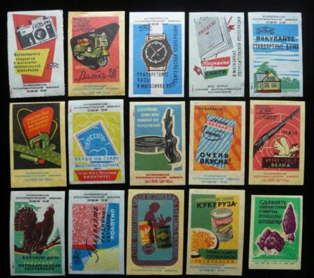 Les étiquettes de boîtes d’allumettes faisaient l’objet de beaucoup de soin en URSS. Outil de communication de masse, elles servaient à véhiculer des messages d’intérêts publics (sécurité routière ou domestique), de propagande politique, de promotion commerciale, etc.
