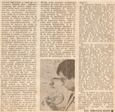 L’histoire de la production de montres chez Mecanica Fina Bucuresti serait consécutive à la la visite de Nicolae Ceausescu le 26 décembre 1978, il a alors été décidé de démarrer cette activité. Insatisfait du lent démarrage de la production de montres digitales OPTIMEF, Ceausescu a exigé, lors d’une nouvelle visite, le 1er novembre 1984 que Mecanica Fina entame une production de montres à affichage analogique, d’abord avec des mécanismes à quartz (les CROMEF) et plus tard dans les variantes mécaniques: les OREX.