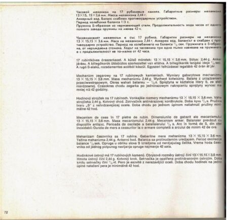 Mouvement mécanique pour montres de dame de la Fabrique de Montres d’Ouglitch, sans seconde, avec antichocDimensions:13mm x 15,2mmHauteur: 3,5mm17 rubis Fréquence: 21600 A/hRéserve de marche: 46hProduit des années ’70 à ’90.