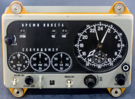 L’horloge a trois fonctions: elle affiche l’heure de Moscou, elle a une alarme et un chronomètre. Le chronomètre était notamment utilisé pour mesurer le temps de combustion du moteur du système de propulsion, pour s’assurer qu’il brûle pendant le temps calculé pour atteindre la trajectoire prévue.