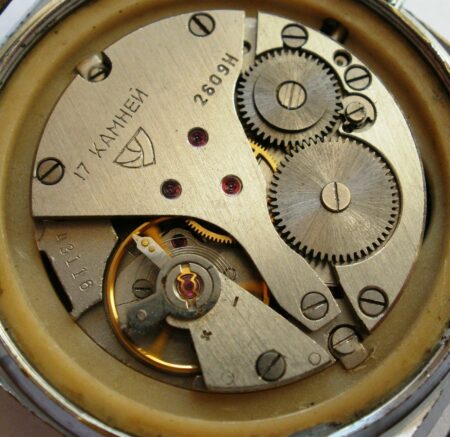 Mouvement mécanique de la Fabrique de Montres d’Ouglitch.17 rubisProduit dans les années ’70 et ’80Il semble que cela soit exactement le modèle Poljot 2609H conçu par la 1ère Fabrique de Montres de Moscou, mais produit par la Fabrique d’Ouglitch