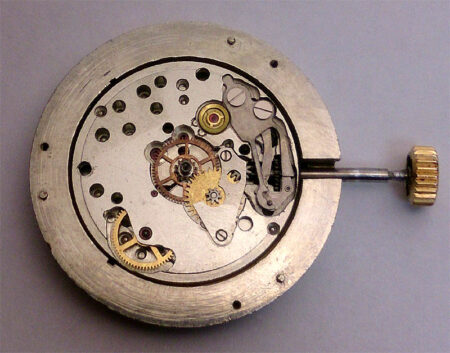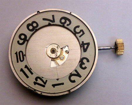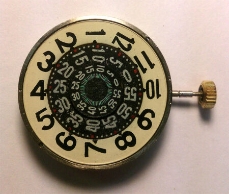 Le mécanisme de l’heure sautante est original. Un fil repose contre le disque et reste droit jusqu’à ce qu’il se plie tellement qu’il saute sur le disque adjacent. La différence par rapport à 1809 réside uniquement dans la roue de la montre, dans laquelle un fil est enfoncé. Simple et élégant.
