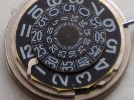 Le mécanisme de l’heure sautante est particulière. Au lieu d’avoir le disque des heures fixé au pignon d’entraînement des heures, comme dans une montre normale, il est connecté indirectement via un ressort en spirale; l’extrémité intérieure du ressort est fixée au pignon, l’extrémité extérieure au disque. Cela fait avancer le disque normalement avec les heures. Pour le saute d’heure, il y a un embrayage sur le côté du disque des heures qui le maintient fixé à l’un des 12 rouages fraisés le long du périmètre. Une fois toutes les heures, une dent sur le côté du disque des minutes débraye l’embrayage pendant environ deux minutes, ce qui permet au disque de « rattraper » le pignon d’entraînement par la force du ressort qui est maintenant légèrement remonté. Ensuite, l’embrayage est engagé et le disque est fixé pendant encore une heure.