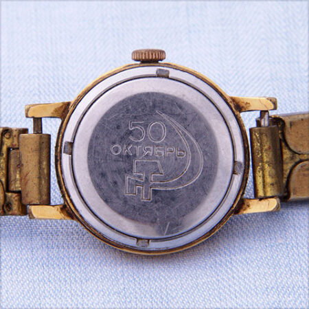 Elle porte un fond célébrant les 50 ans de la révolution d’Octobre.