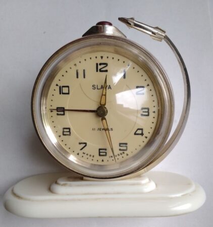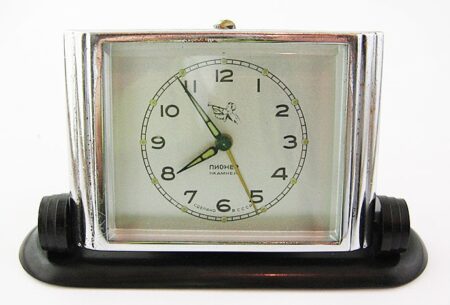 Réveil-matin de la marque « Mir » (« Paix ») de la 2e Fabrique de Montres de Moscou avec l’emblème de la colombe.