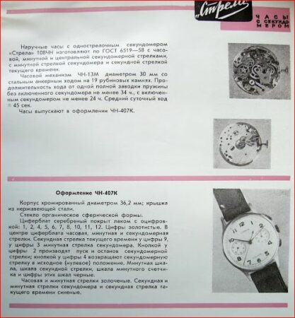 A la fin des années ’70, parallèlement à la production des Poljot, une partie de la production a adopté la marque d’exportation Sekonda. Au fil des ans, la production s’élargissant, ces chronographes sont devenus de plus accessible. A la fin de 1979, 100.000 Strela avaient été produites sous les trois marques mentionnées. Après la chute de l’URSS, ces chronographes ont été à nouveau produits sur la marque Strela, pour exploiter le prestige de la montre.