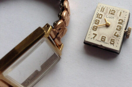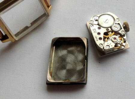 Cadran granuleux, boîtier de laiton plaqué or