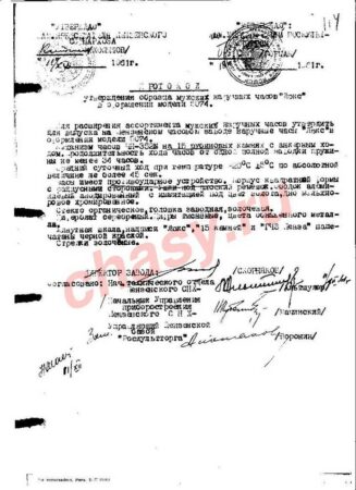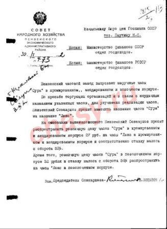 Le document de l’administration économique de la région de Penza relative à la création des montres de marque « Soura » et « Liouks »: