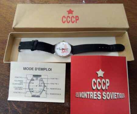 Cela explique la mention механизм CCCP (« mécanisme URSS ») sur le cadran, propre à cette fabrique, plutôt que la formule habituelle cделано в cccp (« fabriqué en URSS »).