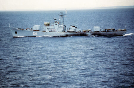 Le navire est ce qui semble être une frégate de la classe 129-A (« Petia »)