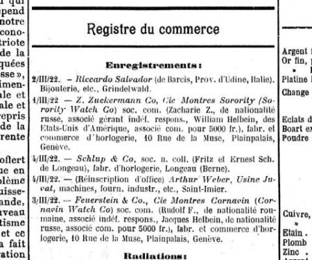 La société Cornavin est née le 3 mars 1922, lorsqu’un certain M. Rudolf Feuerstein, d’origine roumaine, a enregistré la société Cornavin Watch Co. à la Chambre de Commerce Suisse. Feuerstein avait pour partenaire Jacques Helbein, qui malgré son nom était de nationalité russe.