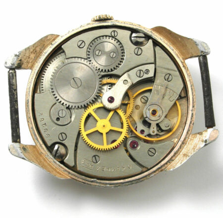 Mentions sur le calibre : 16 камней et initiales de la fabrique de Tchéliabinsk (ЧЧЗ) sur un pont, n° de série (798182) sur un autre.