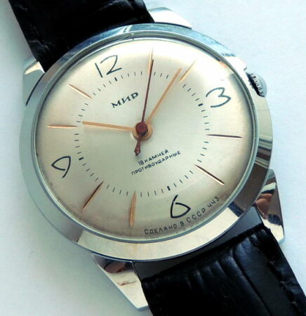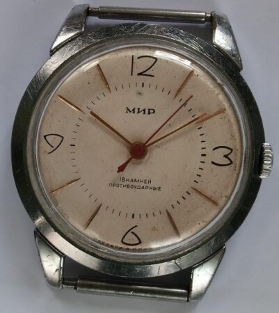 Montre-bracelet, mécanique de marque Мир (Mir, « Paix ») de la Fabrique de Montre de Tchistopol