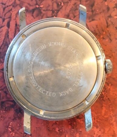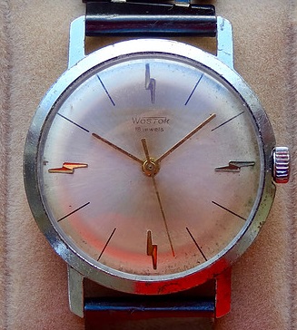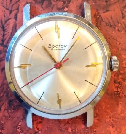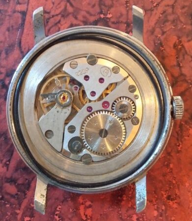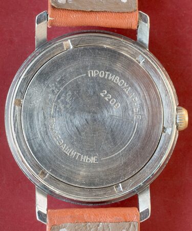 Mentions sur le calibre : n° de série (15209) sur la platine, logo Vostok (B dans un cercle) et 2209 sur un pont.