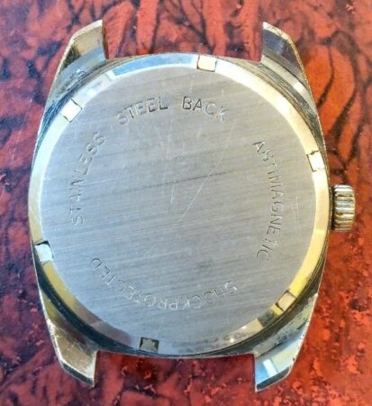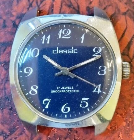 Cette montre a un boîtier, un cadran et des aiguilles qui ne sont pas issus de l’industrie horlogère soviétique. Ce sont des éléments vraisemblablement fabriqués à Hong Kong et la montre elle-même a probablement été produite à Hong-Kong à partir d’une mécanisme soviétique importé.