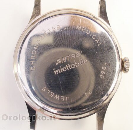 Il s’agit d’une montre publicitaire fabriquée en Italie au profit du médicament Antra Iniettabile, un traitement pour les ulcères.