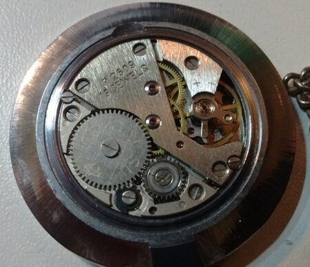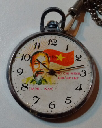 Le portrait de Ho Chi Minh, typique de la production grise du début des années ’90, avec des petites séries de cadrans produits pour les touriste dans un des ateliers de Raketa ou dans un des atelier semi-officiels gravitant autour de l’entreprise et animé par des travailleurs non-payés. La gravure du rochet est typique de 1991-1992.