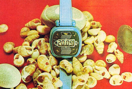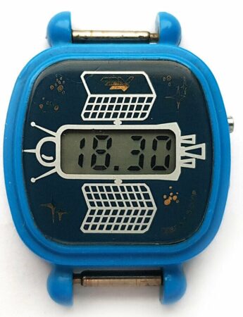 Montre bracelet à quartz et LCD (écran à cristaux liquides) pour enfant, produite par la Fabrique Elektronika du Combinat électronique « Integral », à Minsk.