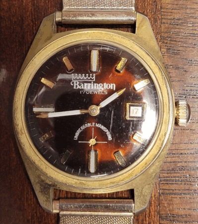 La marque a du tomber en désuétude car elle réapparait, avec une typo différente (frappé d’une couronne) et embarquant des Poljot 2414 ou des Vostok 2605
