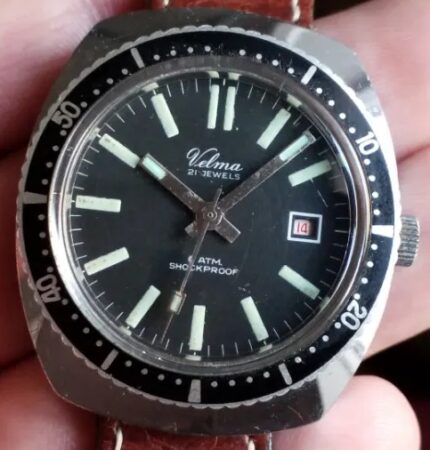 Les Velma emboîtent sont le plus souvent des Poljot de la 1ère Fabrique de Montres de Moscou. Elles sont parfois identiques à celles destinées au marché intérieur à la différence des marquage du cadran et du fond.