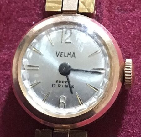 Il existe des modèles de Velma pour dame dont fond porte une mention en français (« fond acier inoxydable »… Mécanisme est inconnu mais cela pourrait être un Tchaïka 1601A.