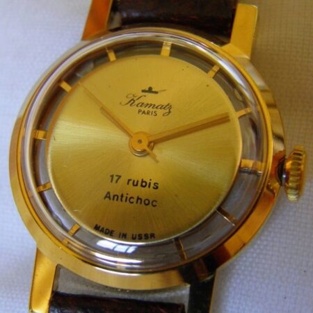 Voici deux modèles qui sont en fait des Vostok 363380 (boitier plaqué or) et 361380 (boîtier de laiton chromé) emboîtant un calibre 2605 à 17 rubis.