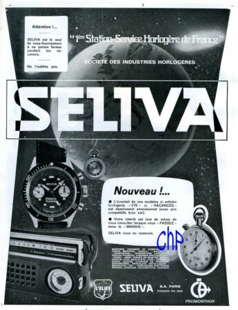 Cette société fabriquait à l’origine des bracelets en cuir (René Seurat fut Président du Syndicat National des fabricants de bracelets en cuir) et ajustait des verres sur mesure pour les montres et horloges. Seliva a ensuite fabriqué des boîtiers, assemblé des mécanismes, et est devenue une station de réparations spécialisé dans les marques françaises (ETA, HP, France ébauche…).