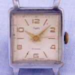 Ce mécanisme à trotteuse a été produit fin des années ’50 et début des années ’60 par la Fabrique de Montres de Penza pour les montres des marques Lioux et Soura selon la norme GOST. 615-58.