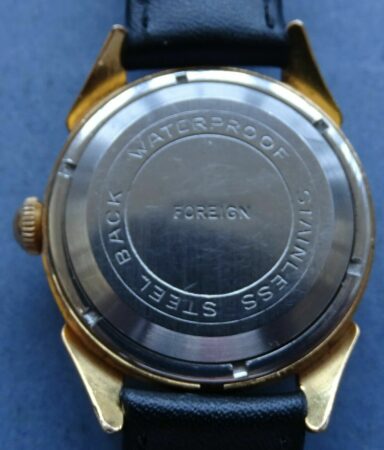 Cette montre était destinée au marché britannique, comme l’indique la mention « foreign » sur le cadran et sur le fond.