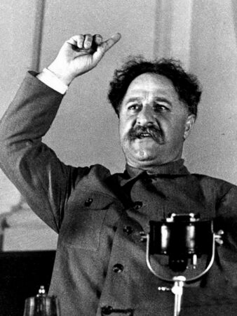 Lazare Kaganovitch est issu d’une famille juive des environs de Kiev. Il travaille dès son enfance comme apprenti cordonnier et adhère au bolchévisme en 1911 et se fait remarquer par Lénine. Il dirige le pouvoir soviétique à Nijni Novgorod en 1918, et remplis différentes fonction politico-militaires pendant la guerre civile, notamment en Asie centrale. Membre du comité central en 1924, premier secrétaire du Parti communiste ukrainien de 1925 à 1928, titulaire du politburo en 1930.