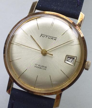 Une Futura produite par (ou pour) Paul Weisz avec un calibre suisse FHS 72-4 (c’est bien le logo déposé par Paul Weisz). Toutes les Futura semblent avoir des mouvements suisses et les Nissim des mouvements soviétiques.