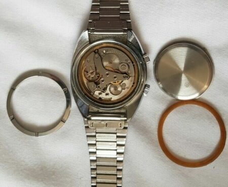 Flamor « Alarm » de la SA Établissements Flamand.Elle emboîte un Poljot 2612 de la 1ère Fabrique de Montres de Moscou.